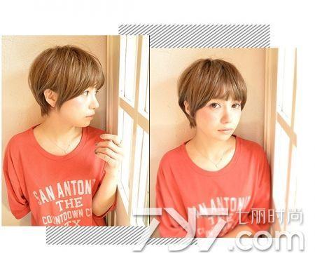 这款齐刘海齐耳短发清爽又减龄,并利用齐刘海搭配鬓角来修饰脸型,而且能突出妹子灵动的大眼睛,再染上一款棕色发色,这样看起来更加时尚吸睛。