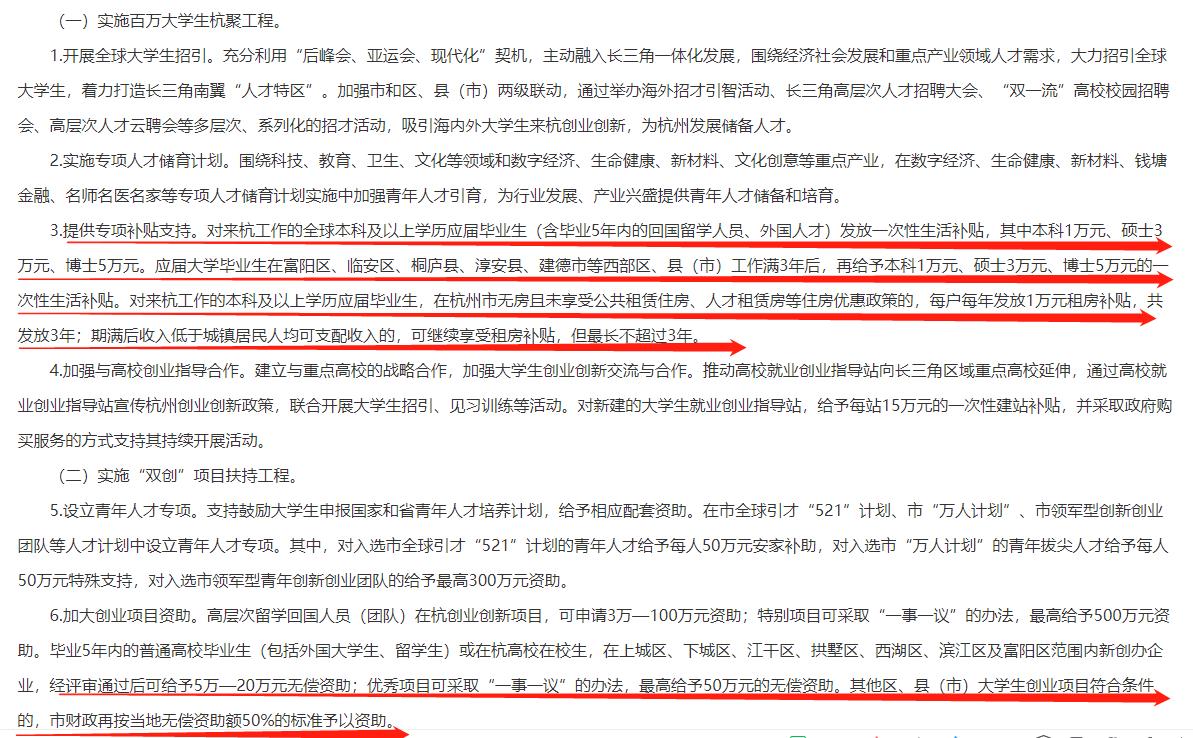从细则上来看,除了吸引人才来杭就业之外,还大力鼓励全球大学生来杭创业,最高给予500万元创业资助。具体实施标准可通过“杭州市人力资源和社会保障局”官网查询具体细节。