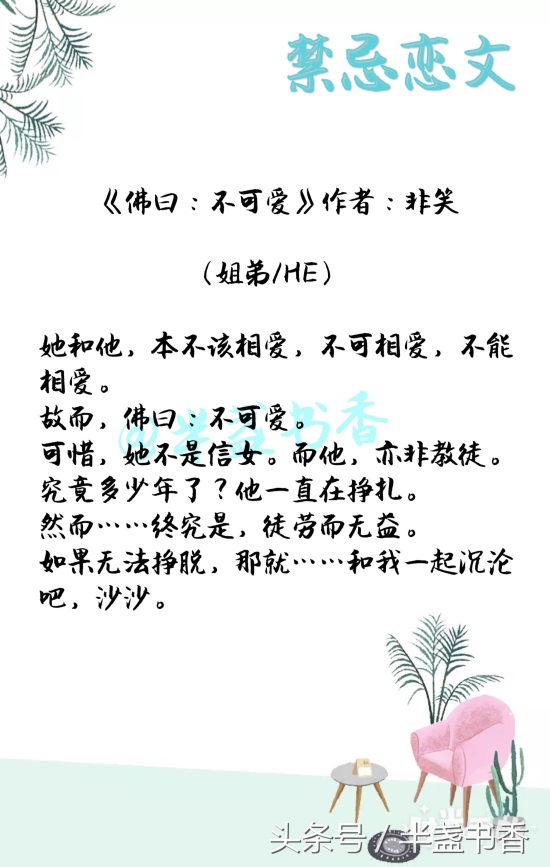 这一期的书单都是禁忌恋文,就是有血缘的,接受不了的宝宝可以看看上一期,上一期书单是伪禁忌恋文,没有血缘的走一波【伪禁忌恋文】,前8本HE,最后一本BE