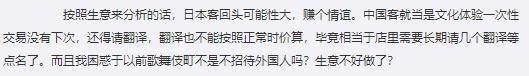 但外国游客几乎都是一次性买卖,体验一次就拜拜,对店家来说只是浪费感情浪费钱。从这个角度来看,对外国顾客有更多限制也并非不合理。