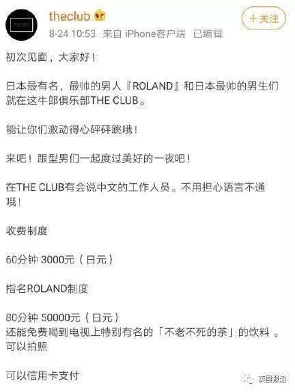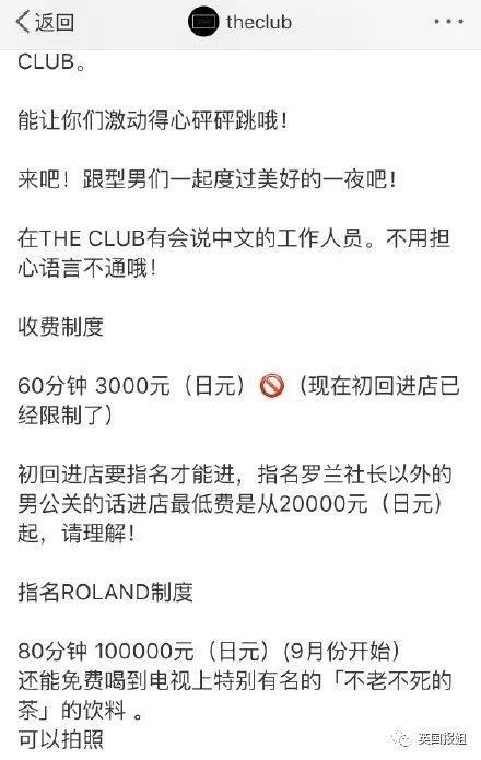 仿佛是感受到了天朝女孩们渴望消费的热情,the club官博直接公布了收费制度,上面写着指名罗兰一次大概要3400元人民币,而且为了迎接大家,他们还准备了会中文的翻译。