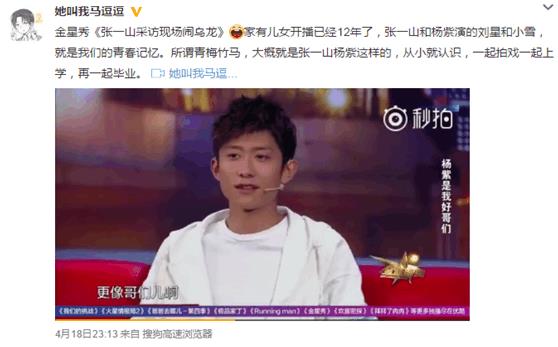 两人在微博狂 撒狗粮 的同时,有粉丝在 杨紫 博文 下方 评论到:“此时 此刻真 为 一山哥 感到 悲催”, 我们都知 道 少时的一 部《家 有 儿女 》成就 了张 一山和 杨紫,当时 两人在 戏中 互怼胡 骂,粉丝们也 是纷 纷看 好这 对 青梅竹 马长大后 会走在一起。