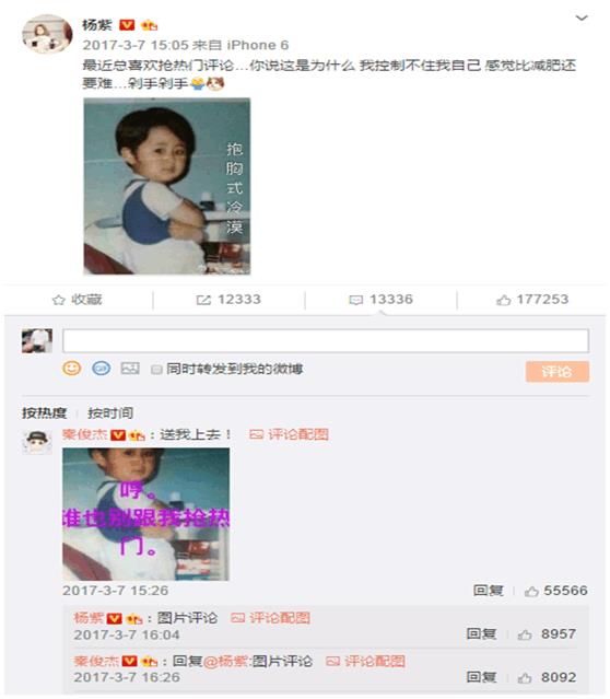 如今算起来两人相 爱快两 周年了 ,期间在这两周年向 吃瓜网友撒 的狗粮也 是超多 ,其中他 们在微博公开恋情后的第二个月撒狗 粮是最频繁 的,当时杨紫 在微博上发了 一张配图,马上 引起了秦俊 杰注 意,并且 两 人还在 微博上 开启 了斗图模式,这波 狗 粮没谁 了。