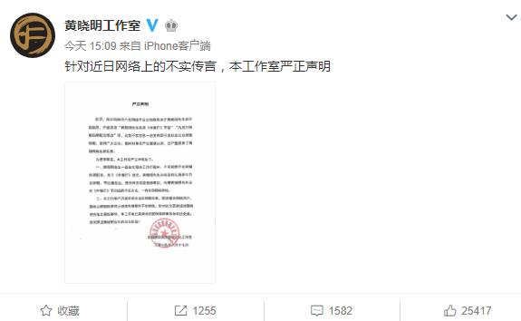 8月17日下午,黄晓明工作室忍无可忍,为此发严正声明辟谣。对于散布谣言者,声明表示已交由律师处理,“坚决捍卫黄晓明先生的合法权益”。看来,当明星也不容易。支持黄晓明维权。