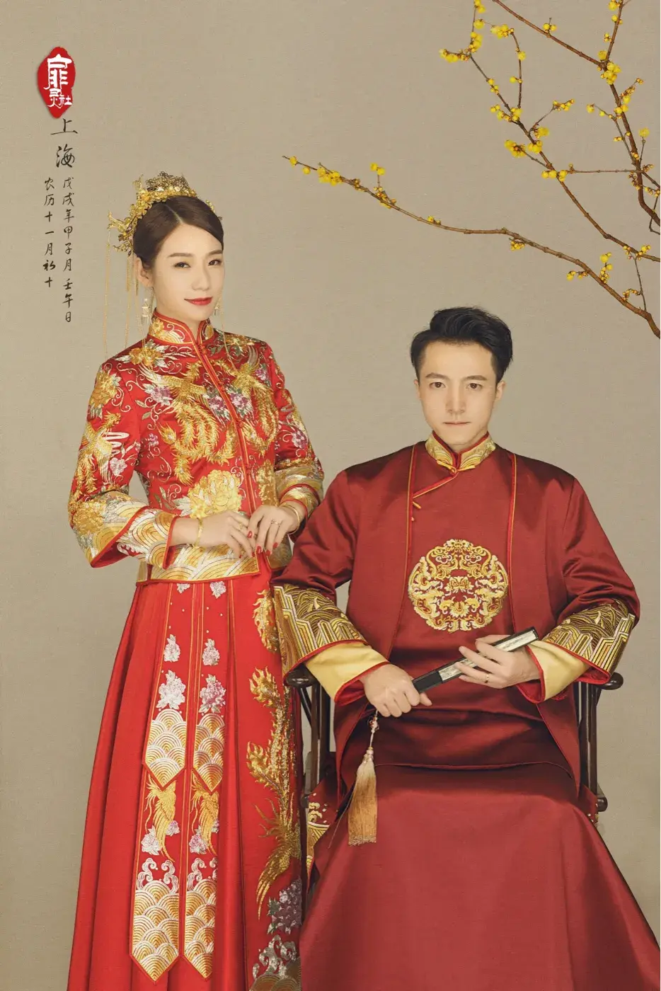 龙凤服是中国传统的结婚服饰,很有怀旧的品味。顾名思义,龙凤服是男女配套的服装。男装是长袍马褂,女装是对襟袄与直统裙。男女的上衣都用红色绸缎缝制,并且分别绣上龙与凤的图案.龙凤服色彩艳丽喜庆。而秀禾服原本是清末民初女子大婚穿的袄裙,因为《橘子红了》火热,后来人们把这种清末民初的婚服叫做秀禾服,秀禾服的图案多样,龙凤鸳鸯、花草林木,只要带有吉祥的寓意都是可以在秀禾服上出现的。也慢慢地秀禾服也成为了,现在里中国传统的结婚服饰必不可少的一套衣服。