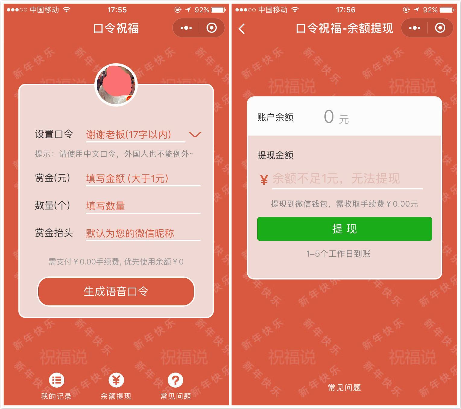 口令祝福,说出口令,领取奖励,语音祝福,气氛更嗨。