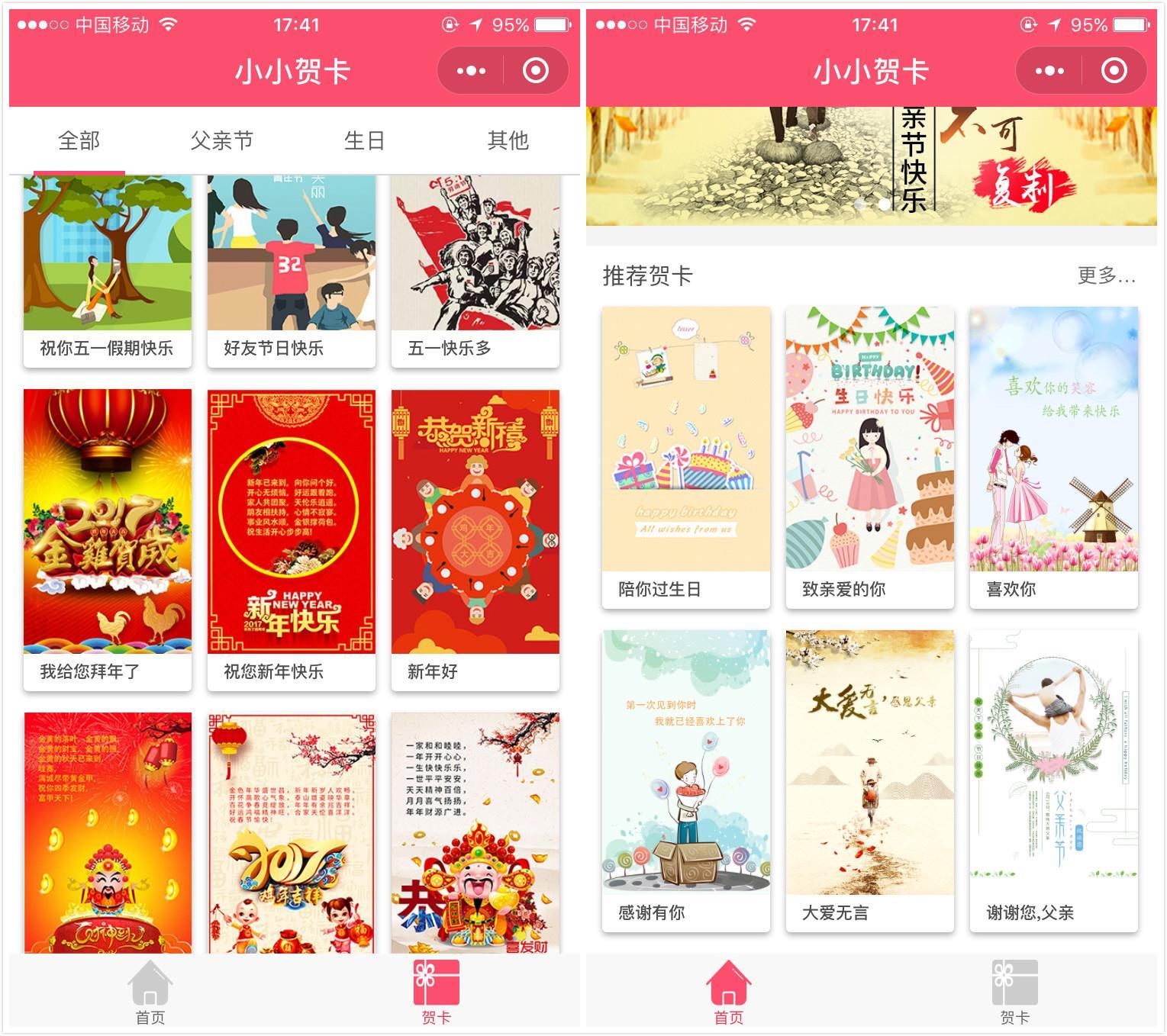 小程序节日贺卡,拜年贺卡,祝福贺卡。
