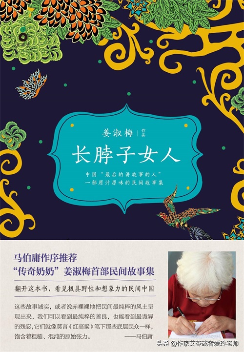 姜淑梅,1937年出生在山东巨野,1960年在黑龙江省安达市落脚,做了二十多年临时工。她60岁学认字,75岁学写作,80岁学画画,已经出版五本书。其中,《乱时候,穷时候》入围“2013大众最喜爱的图书”;《苦菜花,甘蔗芽》入围“2014中国好书”;《长脖子女人》获得2015年度“华文好书评委会特别奖”;《俺男人》记录了几十个家族的传奇故事;《拍手为歌》是她的首部民谣故事画集。