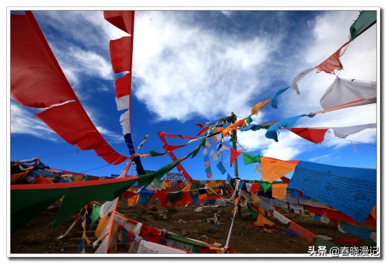 如果要赋予青藏高原一种颜色的话,那它一定是五彩的。行走藏区,你会看到有蓝天的地方便有五彩经幡,这个流传了万年的古老习俗,已经和被称为“第三极”的青藏高原融为一体了,而有经幡的地方就意味着充满了吉祥与美好。当车轮驶向山顶,回首向来弯曲地盘上路时,那飘动的经幡已将我们朝拜的心带向远方。