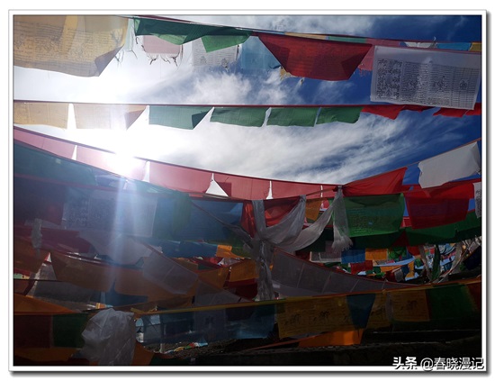 行走在藏区,无论是神山圣湖,还是寺院塔群,亦或是民居庭院,你总能看到经幡的陪伴。经幡是藏族人的信仰,是他们对未来美好生活的憧憬和向往,是一种祈愿祈福方式,更是对古文明的延续,因此,来藏区旅游的朋友,当你路过或看到经幡,不要跨越,不要踩踏,唯有双手合十,默念六字真言,以示对自然,对信仰的尊祟。