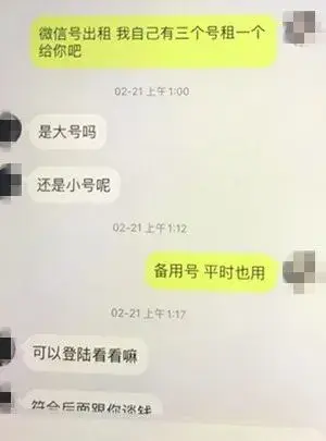 一天,吧友跟郑女士提出租赁微信号,并会支付租金。郑女士想自己有三个微信号,闲置着也没用,现在还能靠它们赚点闲钱,何乐而不为呢?