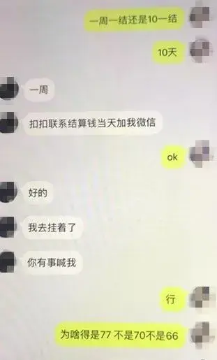 经过一番商议后,郑女士同意以每天77元的价格出租自己的备用微信号,费用一星期一结。