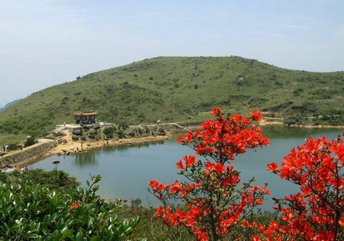 乌岽山是凤凰山的第二高峰,海拔1391米。乌岽山顶峰西侧的天池是凤凰山风景区中最迷人的一处,也是潮州的新八景之一。凤凰天池是由古火山口形成的,面积约4万平方米,常年泉水喷涌。无风时节,波平如镜,青山、蓝天、白云映入水中,格外秀美。池中繁殖着稀世奇珍四脚鱼,还有软壳石螺及各种蛙类和高山蝶类。夏日,山上凉爽如秋,天池碧波荡漾;冬天,池水冰冷透骨,严寒时水面还有数寸厚冰,有时山上还纷纷扬扬飘洒着雪花,颇有北方冬天的景色,是粤东奇景。乌岽山上有很多石景,形状独特的奇岩怪石,令人目不暇接,浮想联翩,在距天池约1公里的主峰北坡上,有一天然岩洞,洞口酷似一眼古井,名曰“太子洞”,它有许多神奇的传说。乌岽山上有近千亩天然牧场,还有满山遍野的杜鹃花和高山灌木。每当晴朗早晨,在山上观看日出,更让人感受到大自然的壮丽奇观。有公路可直达山顶,山上有宾馆等服务设施。