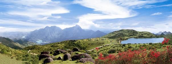 潮州凤凰山是粤东地区的第二高峰,是潮州市一处独特的旅游景观。它坐落于潮州城区北面约40公里处的凤凰镇,主峰凤凰大鬓海拔1497.8米,是潮州市的最高峰。主峰山势巍峨屹立,终日云雾缭绕,银瀑飞泻,雄伟壮丽;山上奇花异草,苍松翠柏,站在顶峰环视,群山俯伏脚下,潮州城远近景色尽收眼底,令人心旷神怡。