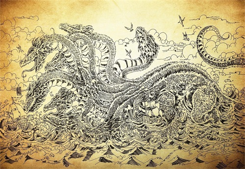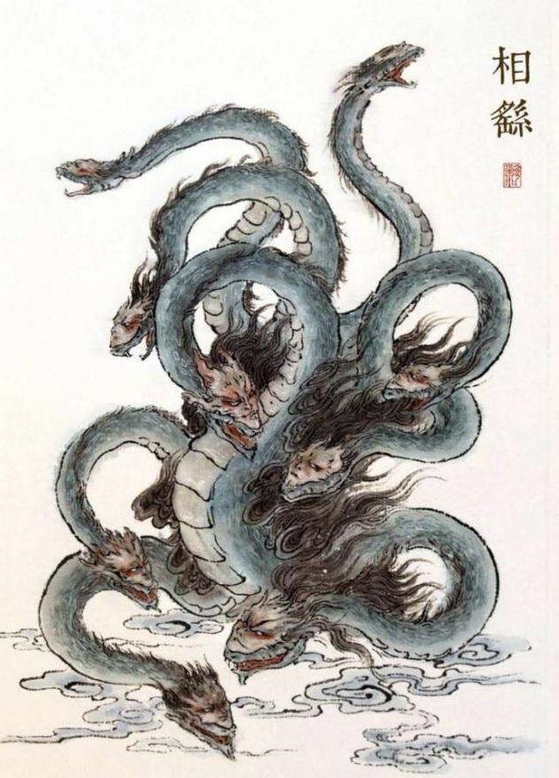 而且当我翻阅资料以后发现,在世界各地的传说中这种生物不但外貌极其相似,还存在着共同点,不论哪个故事里九头蛇这种生物都代表着邪恶、破坏与贪婪,仿佛商量好了一样被赋予了许多符号学和宗教学上的意义,中国的“相柳”水神共工的手下,替水神代行一部分职责,日本的“八岐大蛇”掌管着水灾洪涝,波斯的“阿豸(zhi)达哈栖”是邪神安哥拉曼纽之子,三个主头掌控着痛、苦、死等等……他们最后都被英雄斩落了可以再生的头颅或镇压或封印了起来。