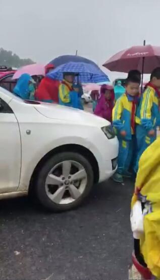 在视频中可以看到天气不是很好,小朋友或是打着雨伞或者披着雨衣正在过马路,这位车主完全不顾及前面的人群安全,肆意行使,甚至有碰到小朋友的意思。