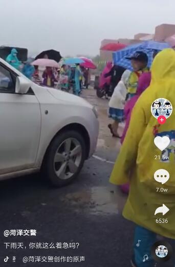本事件来源于【菏泽交警】官方抖音账号【hezejiaojing】发布的一则视频,如此配文:下雨天,你就这么着急吗?