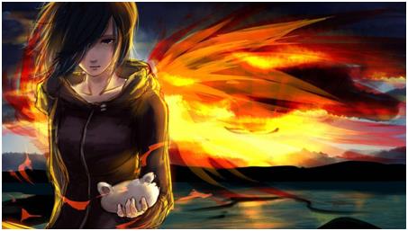 女主角雾岛董香的羽赫,这是一种优点和缺点都十分极端的赫子,这种赫子质轻,像翅膀一样,"羽毛"可以像子弹一样发射出来,个别的羽赫还可围住身体防御,拥有高伤害,但不能持续作战。女主弟弟雾岛绚都也是羽赫。(adc)