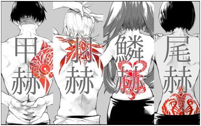 先来介绍主角金木研的鳞赫,作为一名主角赫子不能太强又不能太弱,鳞赫攻击力高(能打),防御值低(能被打)。可能与鳞赫生长在肾脏周围有关吧,再生能力惊人,主角修复身体时,血液像活的一样,简直6的不要不要的。神代利世,笛口雏实,壁虎太守八云也是鳞赫。(中单)