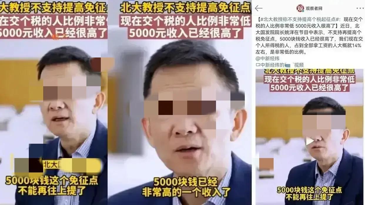 建议提高个税起征点,北大专家:5000元已经是非常高的薪水了