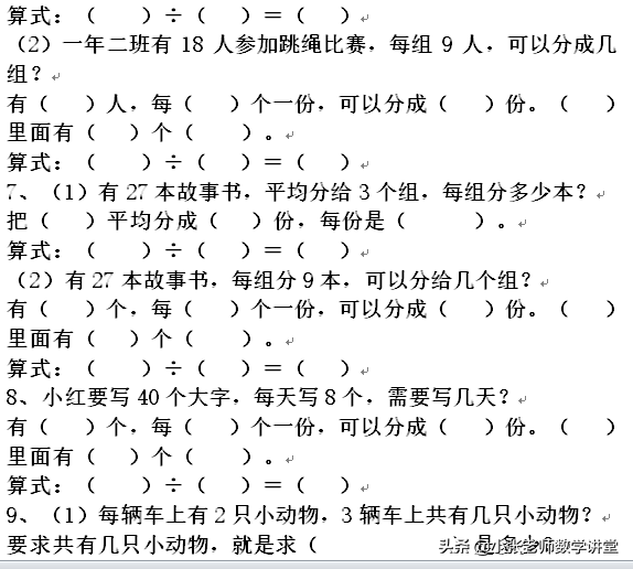 总数÷份数=每份数