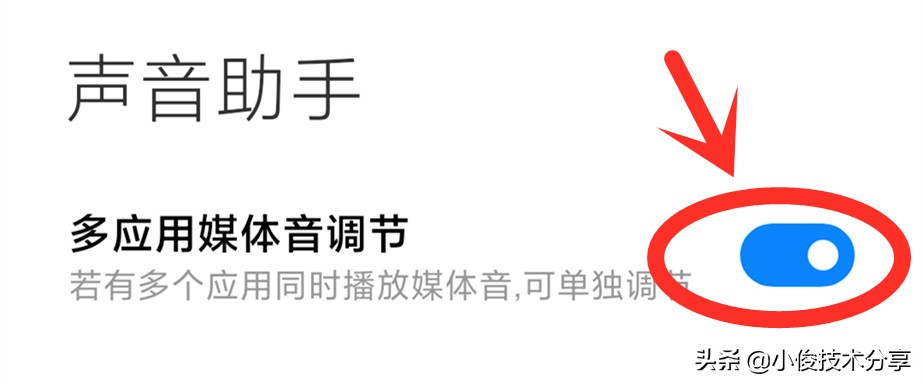 在【声音助手】页面,就会看到【多媒体应用音量调节】开关了