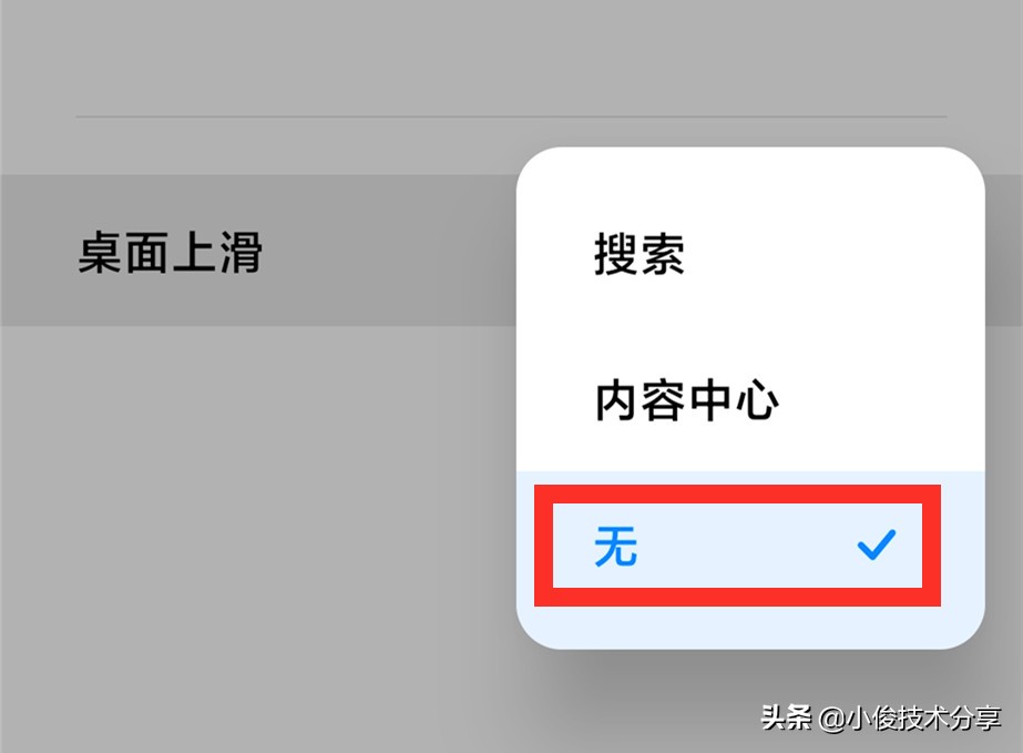接着把【桌面上滑】设置为无就可以了
