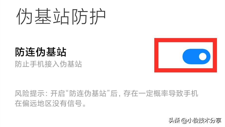 接着就可以看到有个【伪基站防护】我们点开它