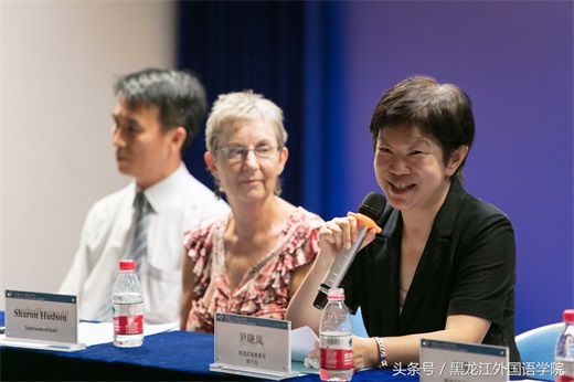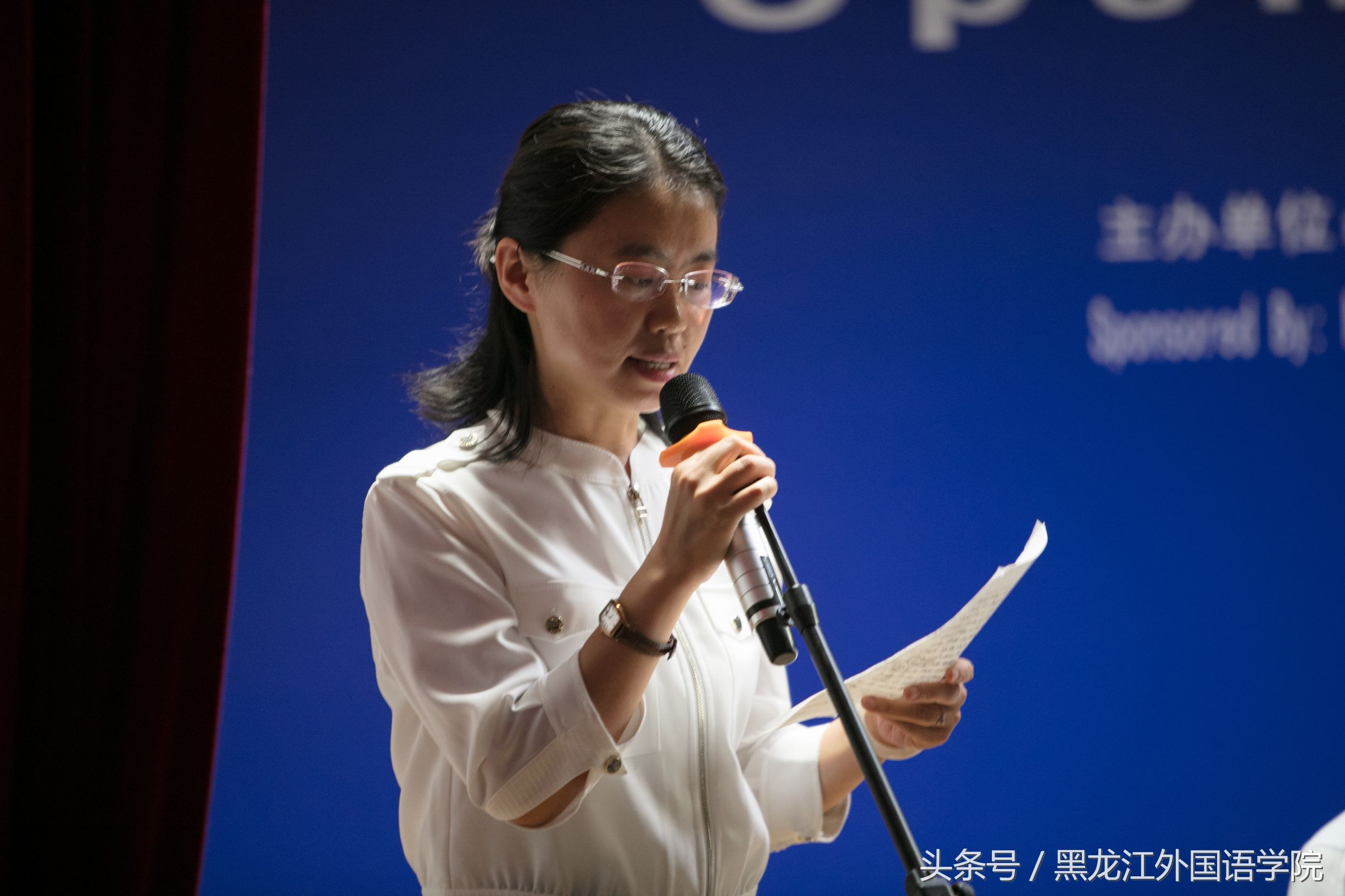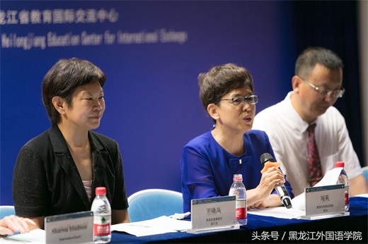 黑龙江外国语学院院长刘英女士代表致欢迎辞,并表示黑龙江外国语学院作为黑龙江省内唯一一所语言类普通本科高等院校,借鉴国际先进的教育教学模式,吸纳国外优质教育资源,在对于英语类的教学采取创新性举措,为英语类人才提供优质的师资、高质量的设施保障。同时也努力探索更加符合英语类人才培养和成长的新路,为国家所需外语类人才的发展做出新的贡献。