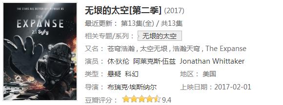 《无垠的太空》现已更新至第二季,但很多科幻迷恐怕还没看过。可能是电视剧的缘故没有引起影迷的注意,就此错过了一个极好的科幻题材的电视剧!
