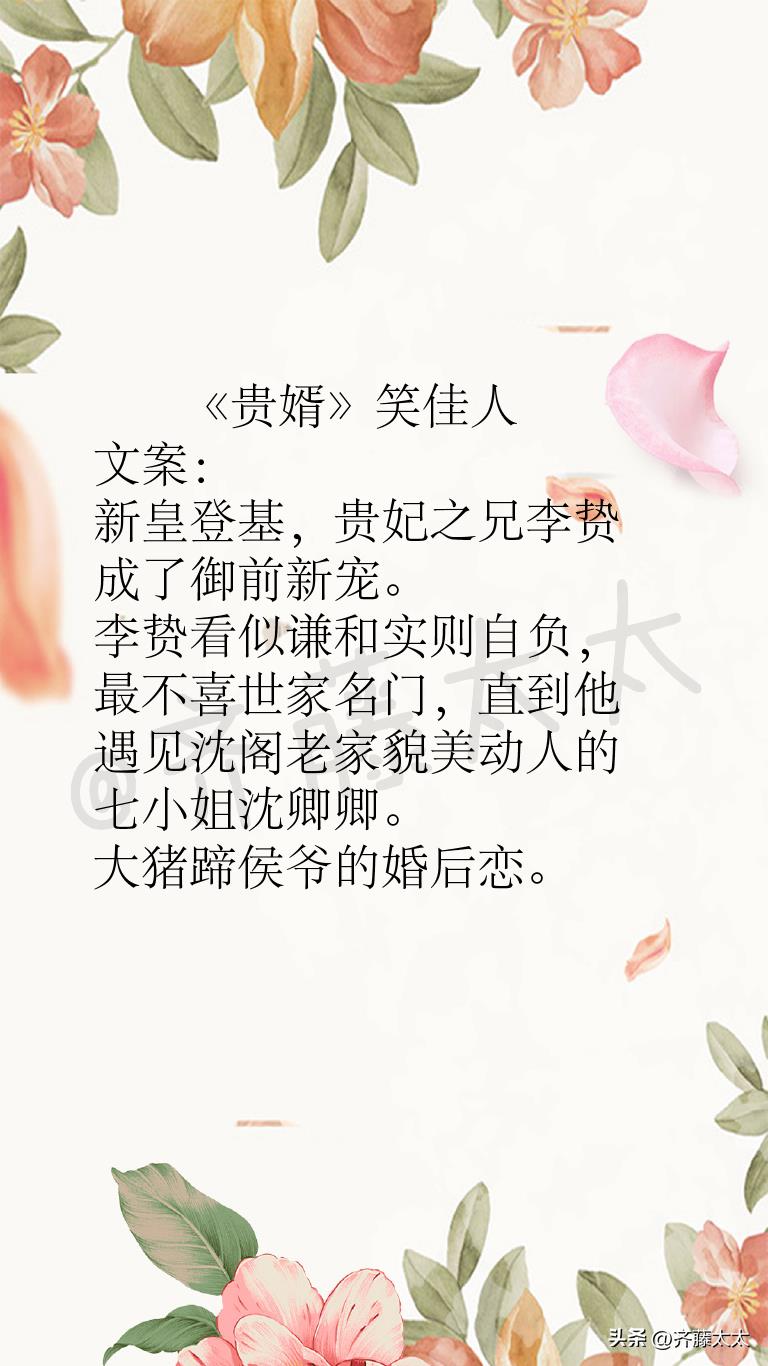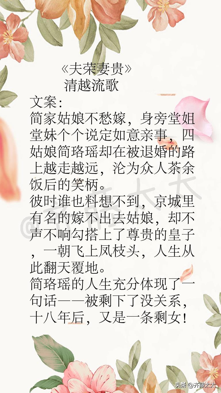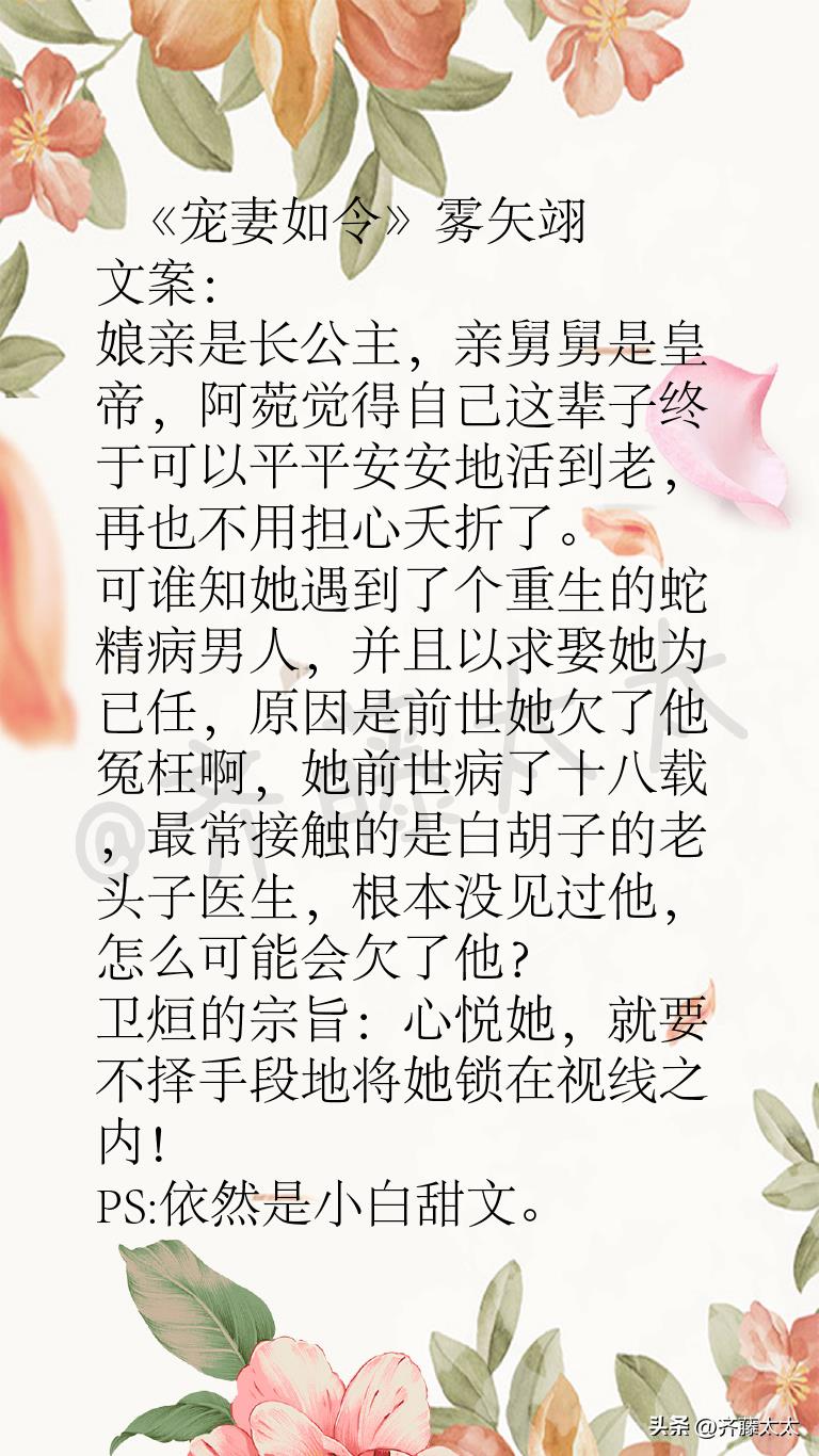 其他几本都是我看过并且过了好几年还觉得很不错的文,清越流歌还有两本《妻凭夫贵》《如意佳婿》也是差不多的,可以入坑;月下蝶影的古言基本上都是扮猪吃老虎的女主,轻松向甜文,值得一看;雾矢翊的宠妻系列文,每一本都是我以前超喜欢的,我这里随意摘取了一篇的文案,其他的你们去主页看吧,绝对不踩雷;笑佳人写了那么多个类型的文,我个人还是最喜欢她的小篇幅古言,感兴趣的也可以去看看其他的~