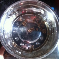 3. 花椒和水烧开后继续烧三五分钟水变成淡黄色关火,同时将白糖倒入搅拌至白糖融化,将花椒水放置一边放凉备用。