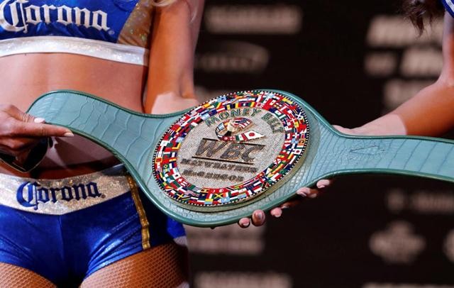 其实在2015年拳王梅威瑟vs拳王帕奎奥的时候,那条WBC的金腰带才是最昂贵的一条,就是下图拳王梅威瑟在赢得比赛后身上挂着的那条WBC金腰带,据悉是由纯黄金和翡翠打造的价值100万美元。