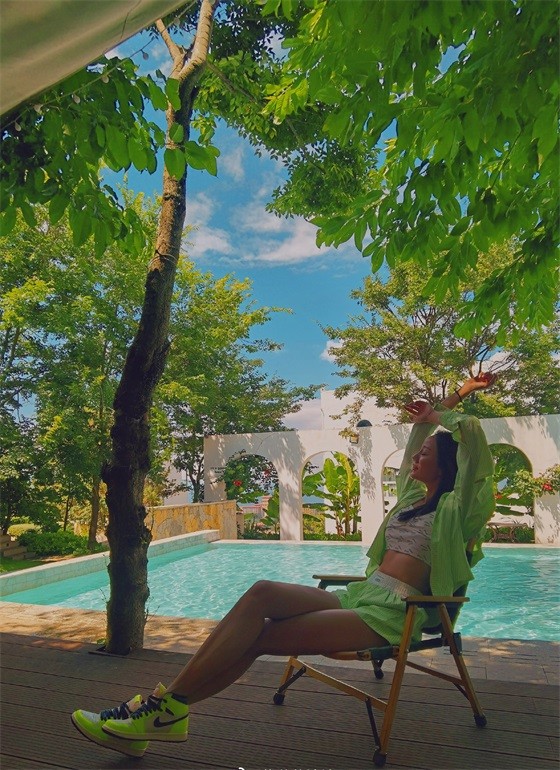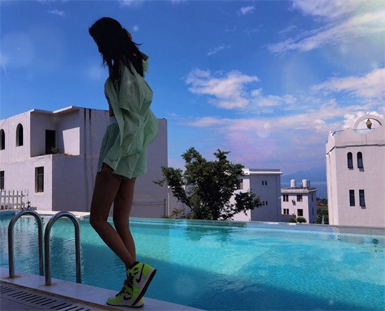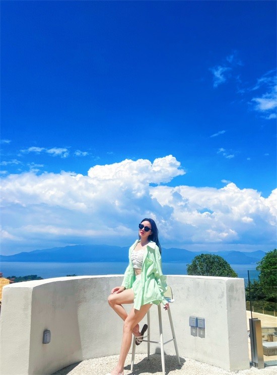 我们看看蒋婷婷的这组写真中,她身穿浅绿色的外衣和短裤,白色的胸衣,黄色运动鞋,秀出修长的健美大腿。蒋婷婷的这个写真是拍摄于云南玉溪抚仙湖。