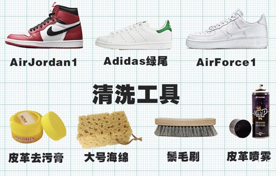 重点是鞋面的清洁哦,比如我们最常见的空军一号,以及Air Jordan 1这样的光面皮革,Tomas建议用半湿的毛巾直接擦洗,然后喷上皮革清洗剂和去污膏,并用上软的鬓毛刷清洁,最后用干净的干布把泡沫擦干净就可以了哦