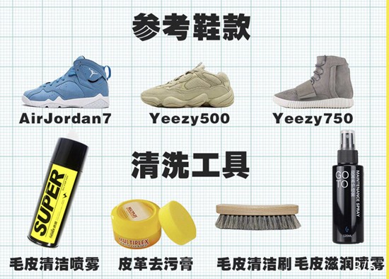 市面上的清洁用刷主要分为鬓毛刷和塑料刷,Tom就比较推荐大家使用鬓毛刷或者专业的毛皮用刷进行清理,在清理的时候,尽量别沾水,配合清洁喷雾和去污膏进行清洗,清洗完毕后用布擦干净,并喷上毛皮用滋润喷雾,给你心爱的鞋子敷上“面膜”