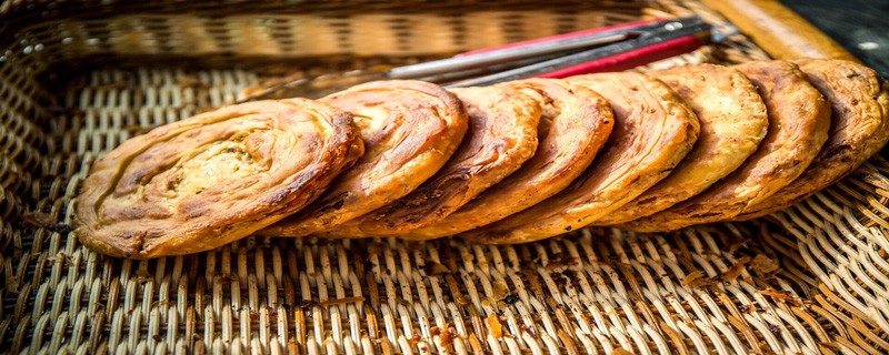 3、脂油烧饼:又叫做脂油饼,是灵宝的一大名吃。它的形状呈扁圆形,上面有旋纹相套,外观焦黄明亮,咬开后层次分明。