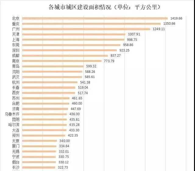 成都837平方公里,排名全国第8,排在成都之前的是4个一线城市(北上广深)、2个直辖市(重庆、天津),以及大湾区的东莞。这两年,相比一线城市更多是老城区拆改(存量更新),天府新区、东部新区的建设突飞猛进(增量提升),成都的这个排名可能还会有进一步提升。