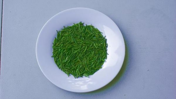 (1)外在感观特征:纳溪特早茶外形扁平挺直,黄绿隐毫、匀净,汤色黄绿明亮,香气栗香浓郁持久,滋味鲜醇爽口,叶底黄绿匀亮。