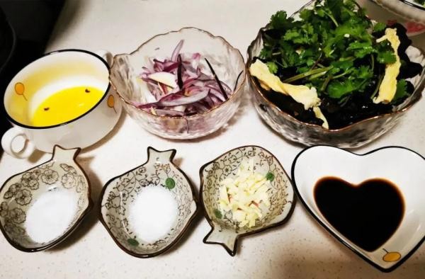 木耳、腐竹、洋葱、香菜、蒜泥