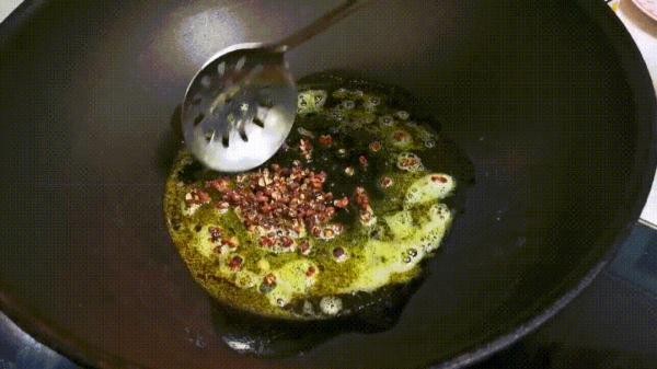 3. 起锅加油,放入花椒,炸好捞出