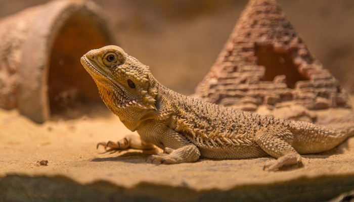 蜥蜴类动物身体一般分为头、颈、躯干、尾4个部分。身体表皮为革质鳞,有些种类在鳞下还有小骨板,如石龙子、蛇蜥等。蜥蜴类动物牙齿细小,舌的形状、长短随品种而异。眼睛较发达,有些种类还有颅顶眼,除多数壁虎外眼睑多能运动,穴居类型的眼睛多隐于皮下。其耳,鼓膜多显露,鼓膜发达。左右下颔骨以骨缝相联合,因此,口不能张开过大。多数蜥蜴有四肢,但有的只有前肢或后肢,指、趾末端有爪。有胸骨。