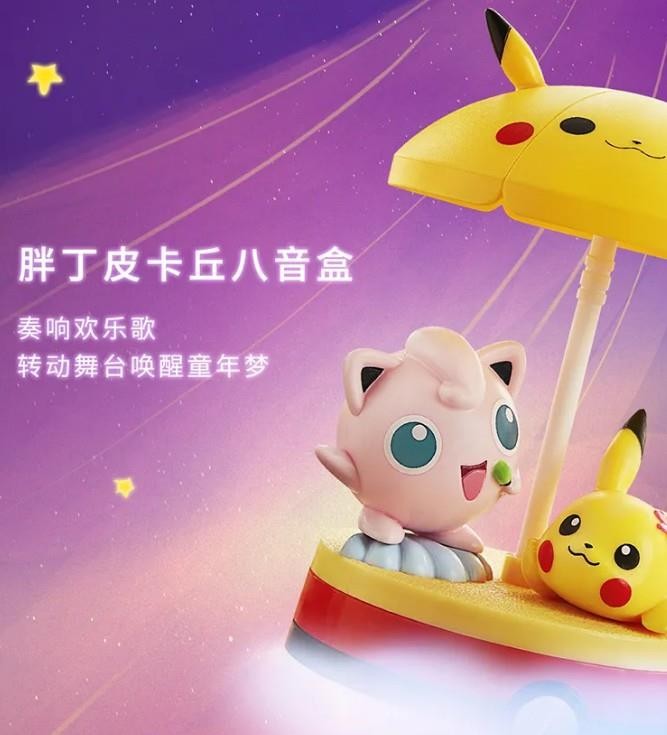 这次的联动玩具有胖丁皮卡丘八音盒、皮卡丘西柚水壶、懵圈可达鸭。