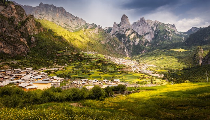 甘南藏族自治州位于青藏高原东北边缘,地处青藏高原、黄土高原和陇南山地的过渡地带。版块地势西北高,东南低,由西北向东南呈倾斜状。境内山峦重迭,沟谷纵横,地形错综复杂。西南部的积石山系,西北部的西倾山系与南部的岷山,迭山山系形成州境地貌的主要构架。