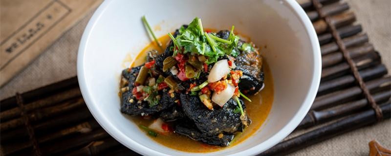 南京臭豆腐分为两种,一种是瓦灰的豆腐干,一种是灰白的嫩豆腐。瓦灰的臭豆腐干子,在油里炸的时间需稍久一些,才能炸得透,随着诱人的臭味弥漫开来,豆腐干的表面就会起小泡泡,待色转变成灰黑色,就可以吃了。这样的臭豆腐干子一般切成小块,串在竹签上,炸熟后直接刷上摊主备下的调味酱,趁热食之,香脆可口,颇有嚼头。