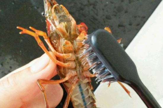 先用水反复冲洗小龙虾,洗去泥沙,再用牙刷或者钢丝球刷洗龙虾的腹部,一只手要抓住龙虾的虾背,防止手被钳住。龙虾的钳子比较大,被钳住会很疼,建议戴上手套再刷洗。