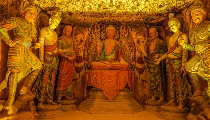 莫高窟各窟均是洞窟建筑、彩塑、绘画三位一体的综合性艺术。洞窟最大者200多平方米,最小者不足1平方米。洞窟形制主要有禅窟、中心塔柱窟、佛龛窟、佛坛窟、涅槃窟、七佛窟、大像窟等。