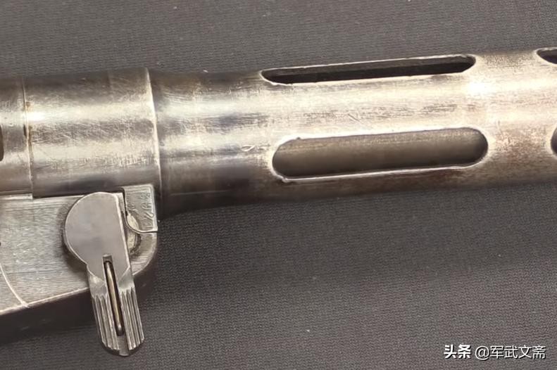拉赫蒂的这把索米冲锋枪,是带有一个可快速拆卸的枪管和枪管罩的。枪管罩底下有一个固定栓,转动之后就可以拆下来枪管罩,然后直接就能拧下来枪管。这个设计,其实还是因为芬兰人走错了路,当成机枪了。我们可以看,MG-34、MG-42、ZB-26等都是带有一个可以快速更换的枪管的,其实冲锋枪是不需要的。
