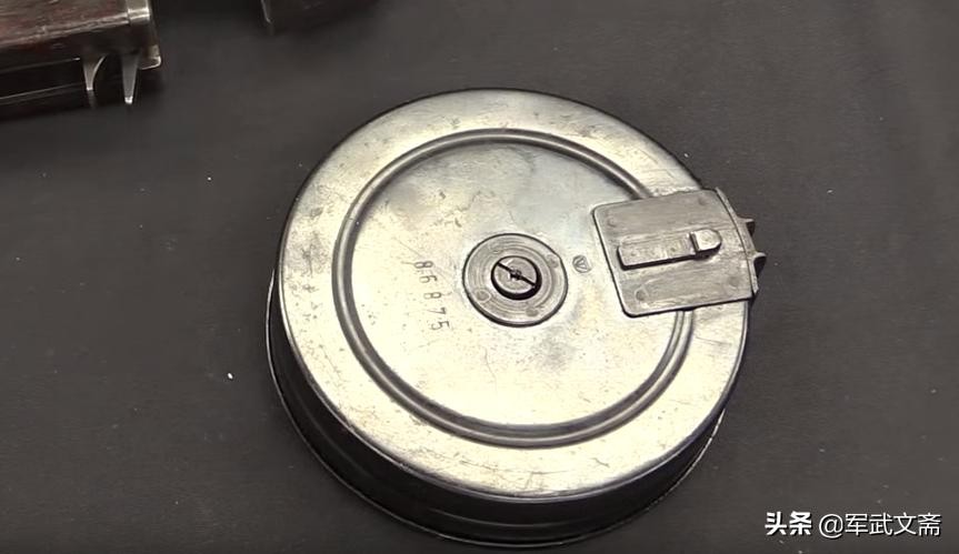 之所以使用弹鼓供弹,原因在于,这把冲锋枪的射速太快,每分钟900发的射速,如果使用25发的小弹匣供弹的话,扣动两三次扳机,很快就打没了。而这个71发的大弹鼓在后来的苏芬战争中,被苏联人看中,苏联人也是照着这个71发的弹鼓,给自己的PPD-40也做了一个弹鼓。