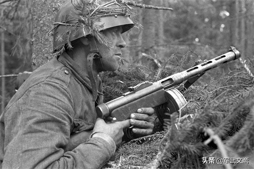 1939年的苏芬战争中,芬兰军队配备不少这个索米冲锋枪,给苏军打的那叫一个怀疑人生,最后是以一个惨胜收场的。以前,苏军并没有如何重视冲锋枪,而被索米暴打之后,随着战争结束,苏联人开始着手自己的冲锋枪,当时苏联人拿着的还是PPD,到1940年的时候进化出了PPD-40。而等到1941年,什帕金完成了对PPD-40的简化工作,研制出了PPSH-41。